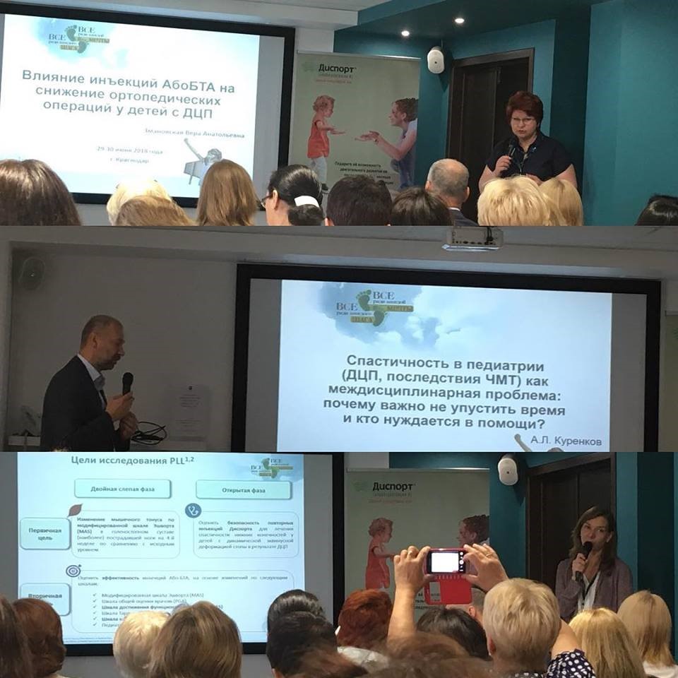 29, 30 июня 2018 года в городе Краснодаре проводилась конференция по ДЦП «Путь к детской мечте». На конференции были представлены доклады ведущих детских неврологов России , занимающихся вопросами ботулинотерапии. 30 июня был проведён мастер класс по ботулинотерапии с участием Куренкова А.Л, д.м.н. ( г. Москва), Кениса В.М., д.м.н. (Г. Санкт- Петербург), Носко А.С. , кандидат мед наук (г.Москва), Змановской В.А., к.м.н. (Г.Тюмень). В конференции принимали участие сотрудники неврологического центра областной детской больницы ОДКБ г. Ростова- на -Дону. Бочковой Е.Н. был представлен доклад «Получение регистрации расширенного спектра мышц нижней конечности для лечения спастических форм ДЦП: какие преимущества это даёт врачу и пациенту ?. Взгляд врача- невролога.»